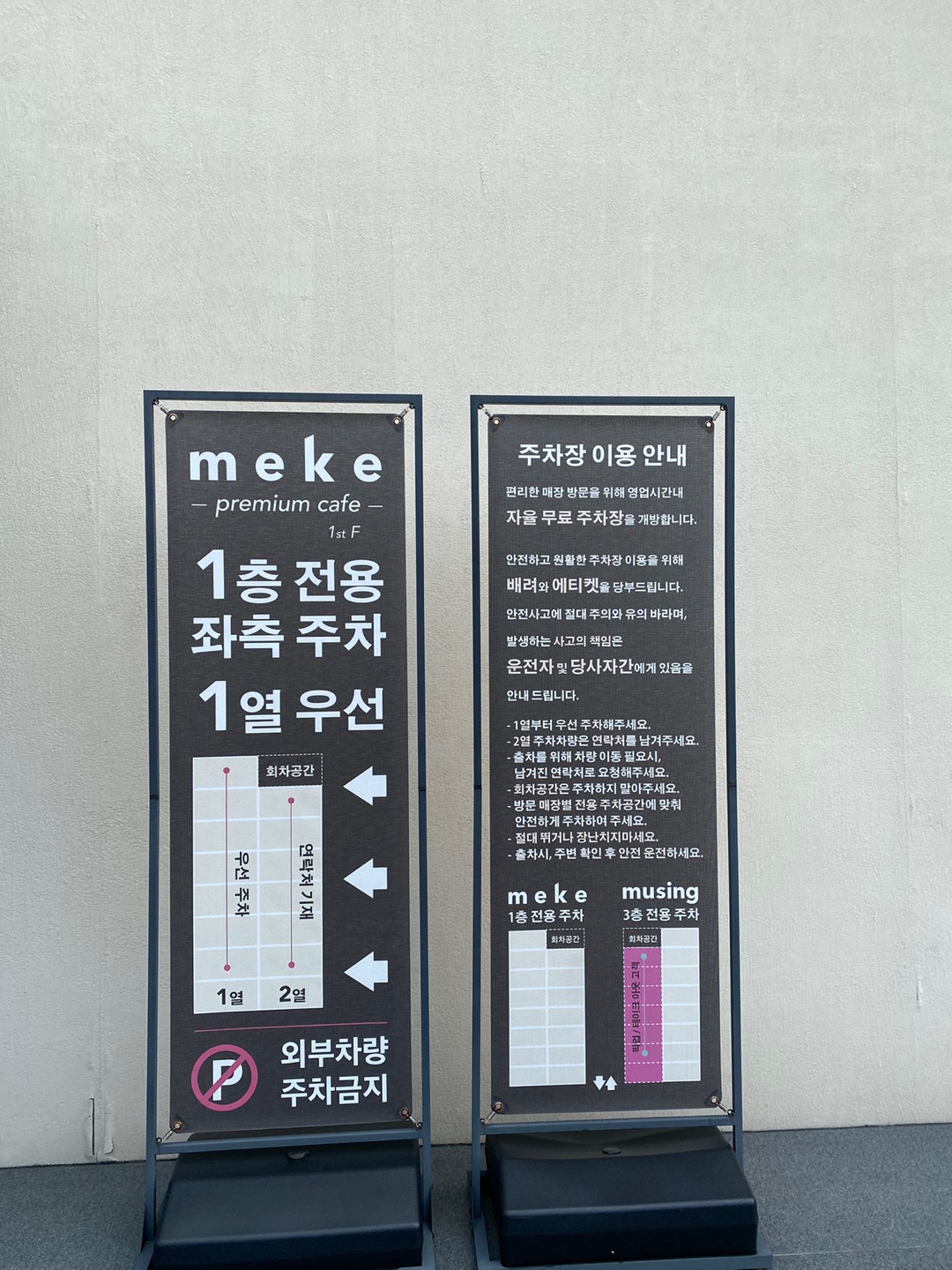 반려동물 동반이 가능하지만 메케의 모든 공간이 아닌 테라스석만 이용가능하다는 안내 문구가 보이네요.