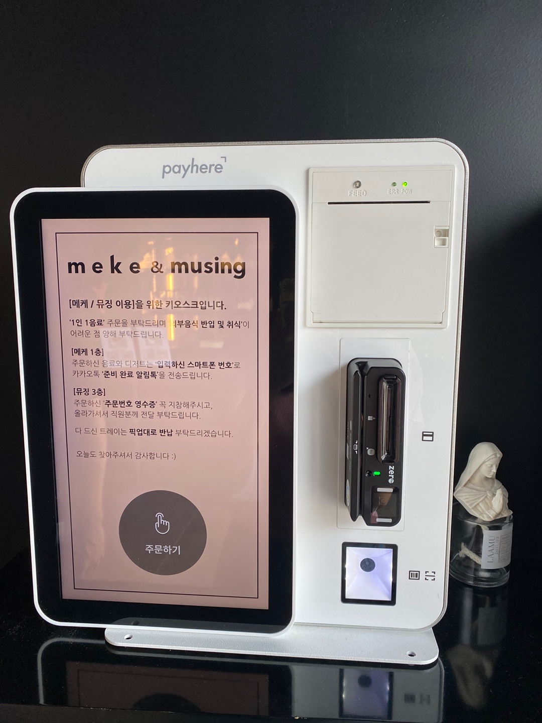주문은 입구에서 키오스크로 간편하게 하실 수 있어요.