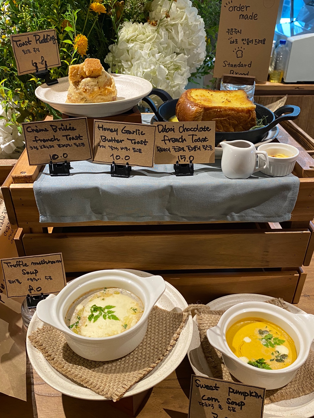 계산대에서는 수프나 토스트 종류 주문도 추가로 할 수 있어요.
